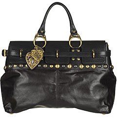 - Smooth black leather construction. GOLDTONE Hardware