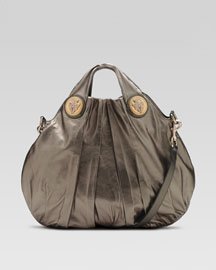 GUCCI 'Hysteria' top handle bag with metal gucci crest detail. This is a genuine and absolutely gorgeous Gucci medium top handle bag, which normally retails for $ 1995 + tax. This is the middle, top bag from the collection of hysteria processed with gold hardware. It has double handles removable shoulder strap + 1. The color is a beautiful pewter patent. On some pictures there is some gold to clay. It is not the golden color, but the pewter color. The interior is covered with black cloth imprinted with Gucci and has 2 small pockets + one zip pocket. The color is hard to describe to me, and point to the pictures because of the reflection of the flash of the camera and light. In short, it is a GORGEOUS handbag and rare color. This bag is brand new with tag still on him, never carried out and comes complete with the dust cover and Gucci Gucci Papers. There are no errors detected. I tried to take lots of pictures, so you are sure you will get the real thing, if you still need more images for authentication purposes, I would like to ask for a larger quantity, simply.